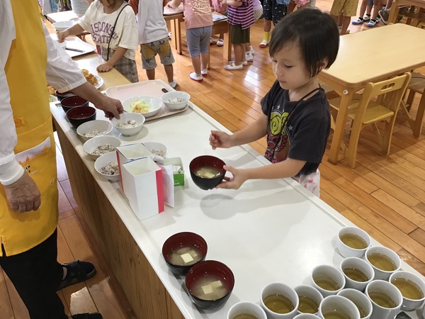 今日は以上児さんの【味噌汁セレクト】の日でした。