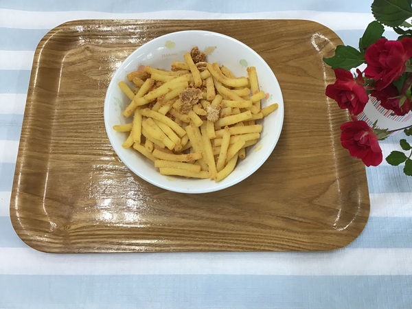 <未満児朝のおやつ>・マカロニあべかわ・牛乳
