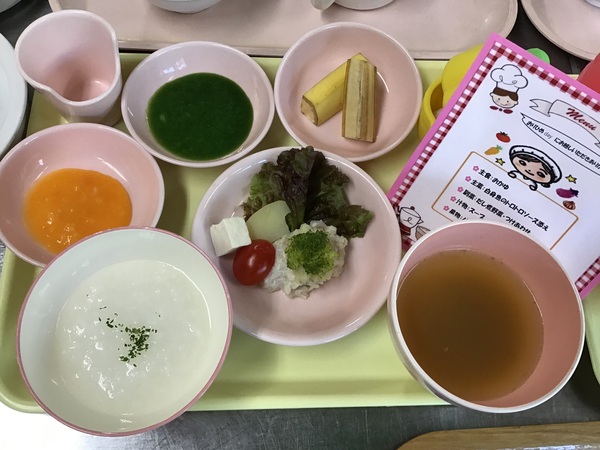 保育園のお兄さん、お姉さんと一緒に遊んだり、離乳食を食べたり楽しく過ごされたようで嬉しく思いました。